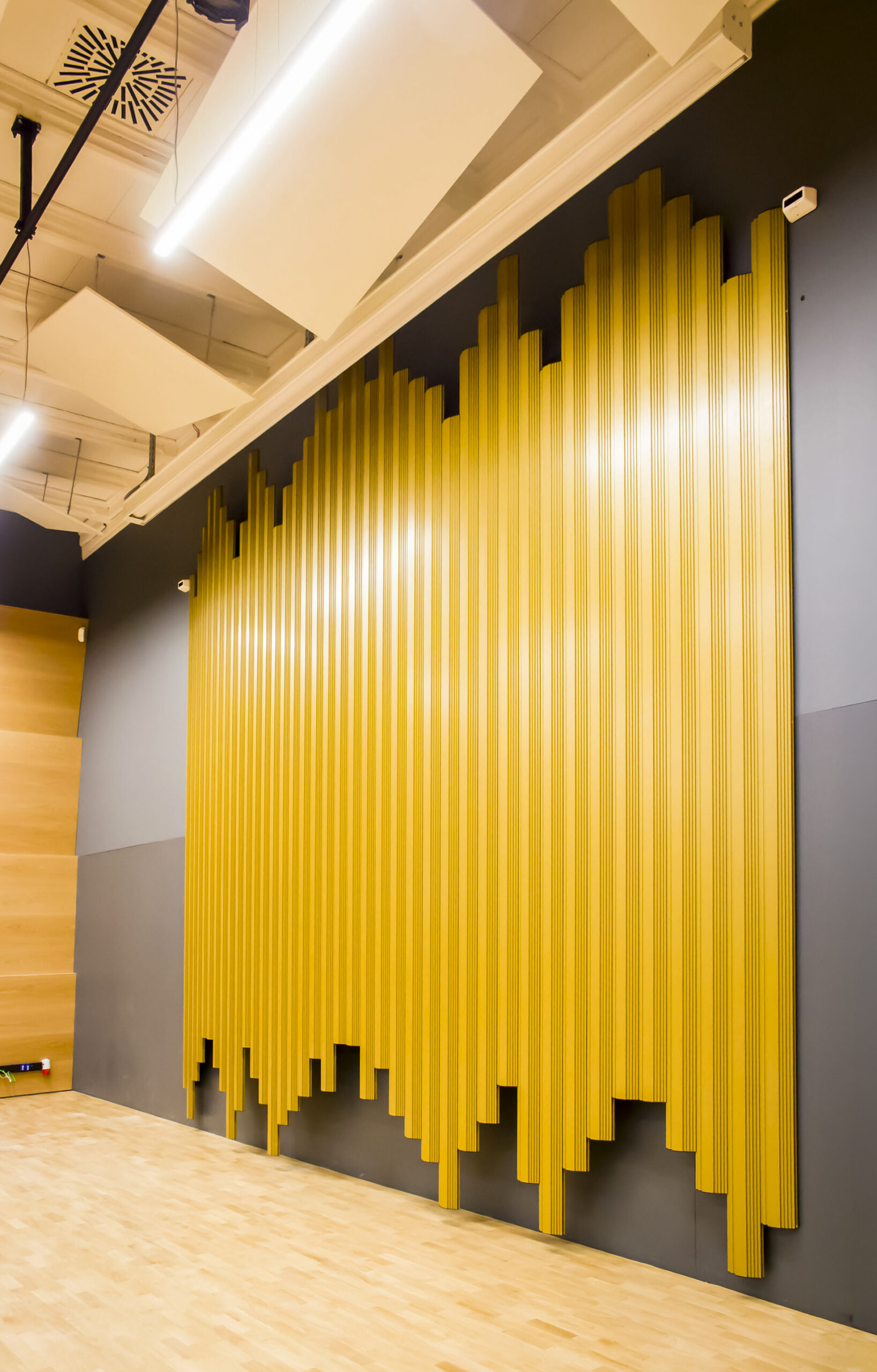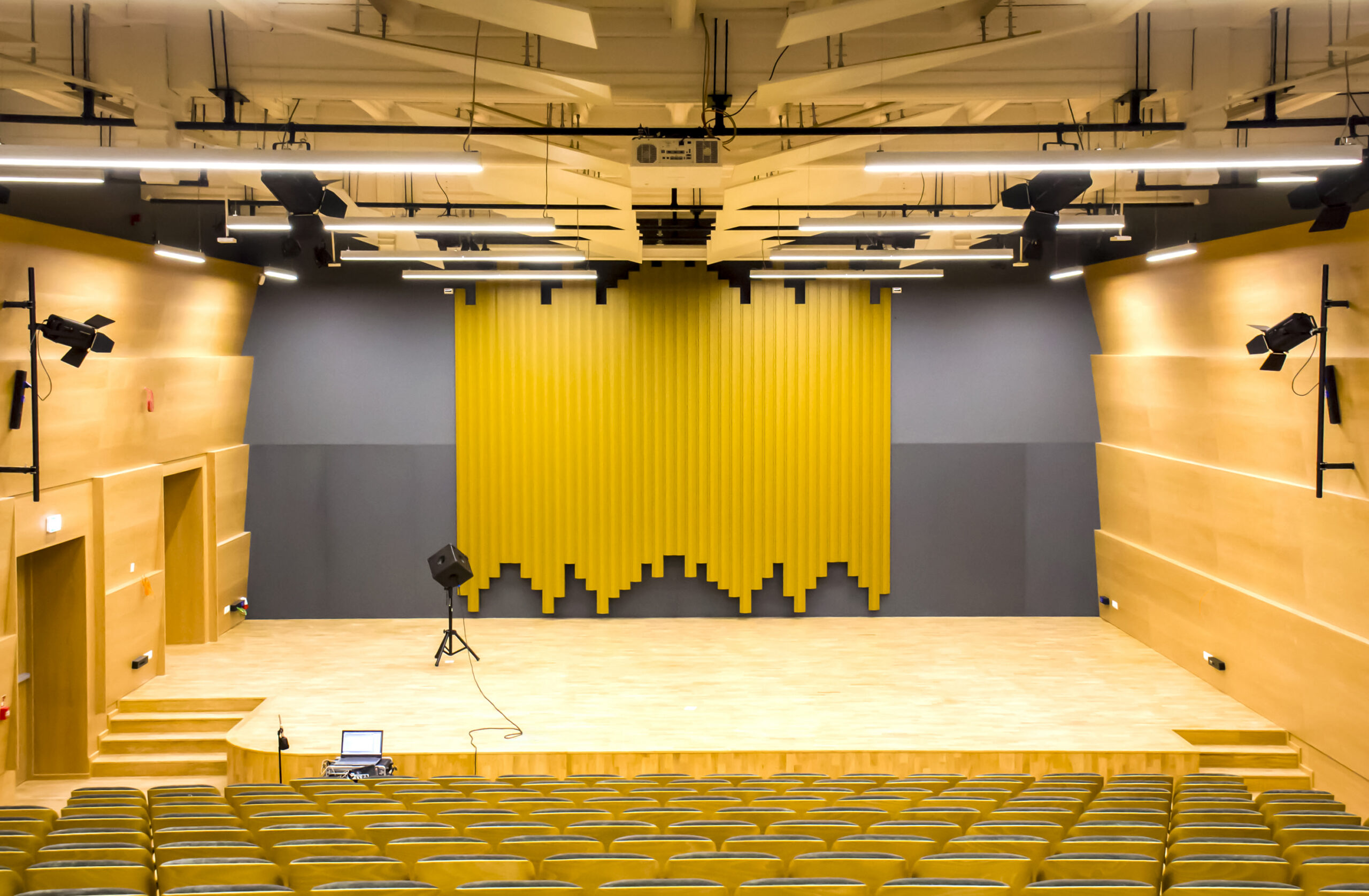 Projektowany indywidualnie kompleksowy system akustyczny uwzględniający odpowiednie parametry akustyczne.