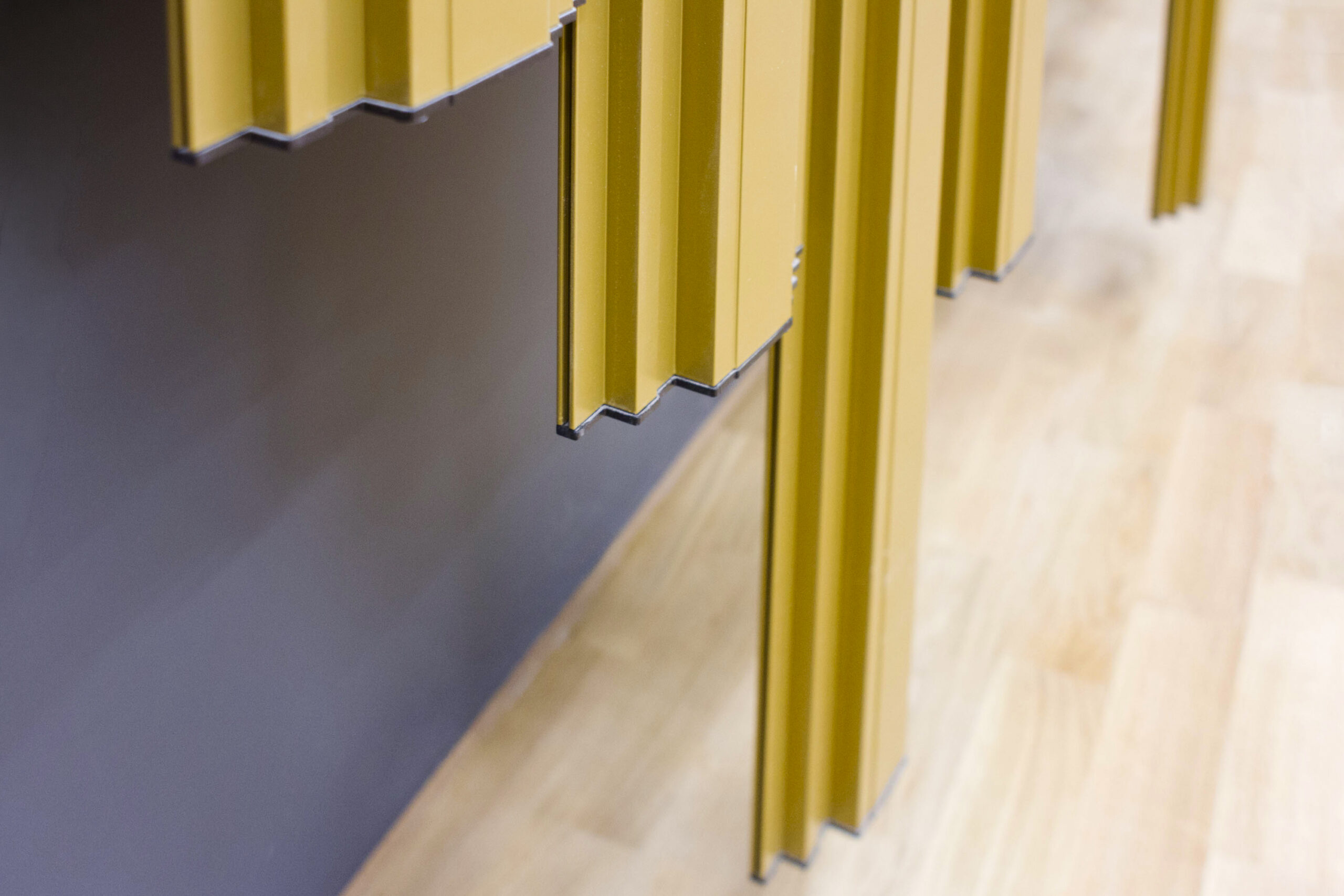 Dyfuzor akustyczny OptiDi dostępny jest w dowolnym kolorze z palety RAL K7 Classic lub drewnopodobnym, również w wersji z wyczuwalnym rysunkiem drewna.